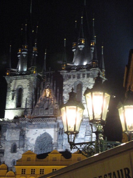 Kvällsbild från torget i Prag.