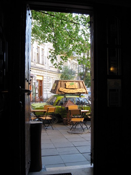Sett genom dörren från en härlig genuin polsk restaurang.