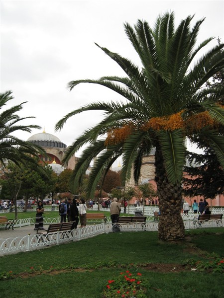 Dadelpalm med Hagia Sofia i bakgrunden