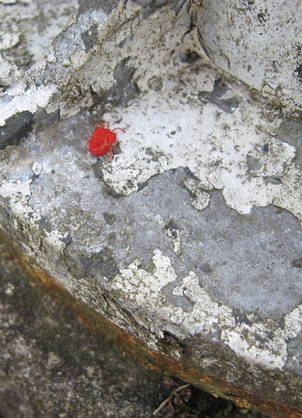 En liten skalbagge som kryper på en stor sten.